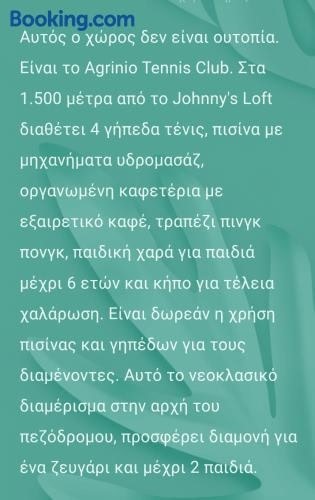 Johnny's loft beschikt over uitzicht op de stad, en biedt accommodatie met een terras en een balkon, op 26 km van Meer van Trihonida. De accommodatie ligt op 37 km van Meer van Messolonghi en biedt gratis WiFi in de hele accommodatie.
