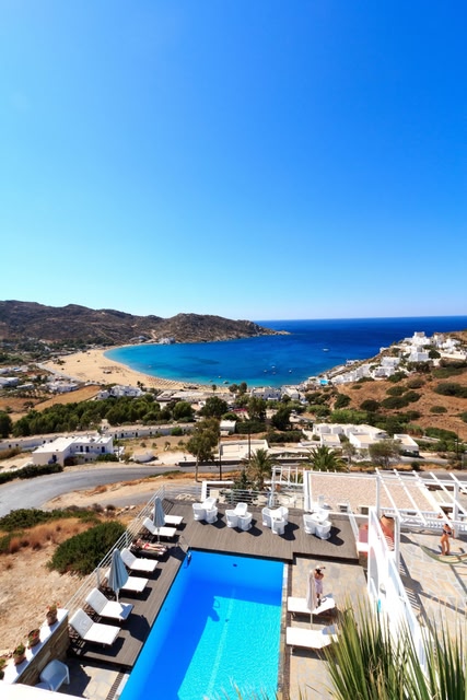 Het Far Out Hotel & Spa and Luxuury Villas ligt tegen de bergen en biedt uitzicht over de Egeïsche Zee. De luxe villa's hebben een Cycladische stijl en beschikken over een zwembad op het dak met een houten zonnedek. Het hotel heeft een cocktailbar.