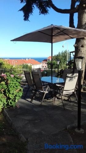 Appartamento con giardino privato heeft uitzicht op de zee, en biedt accommodatie met een balkon en een koffiezetapparaat, op 8 minuten lopen van Spiaggia di Santo Stefano al Mare.