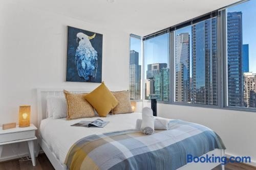 In the centre of Melbourne, located within a short distance of Crown Casino Melbourne and Eureka Tower, 'Mainpoint 25th' Sky-high and Central with Pool offers free WiFi, air conditioning and household amenities such as a microwave and kettle.