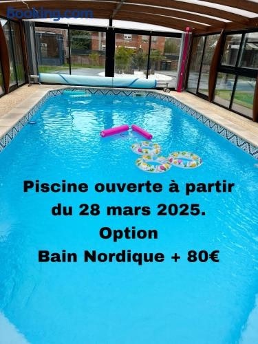 Logement insolite avec bain nordique ligt in Lestrem en is voorzien van een privézwembad. De accommodatie met airconditioning ligt op 28 km van Metrostation St Philibert, er is gratis WiFi en je kunt er privéparkeren op het terrein.