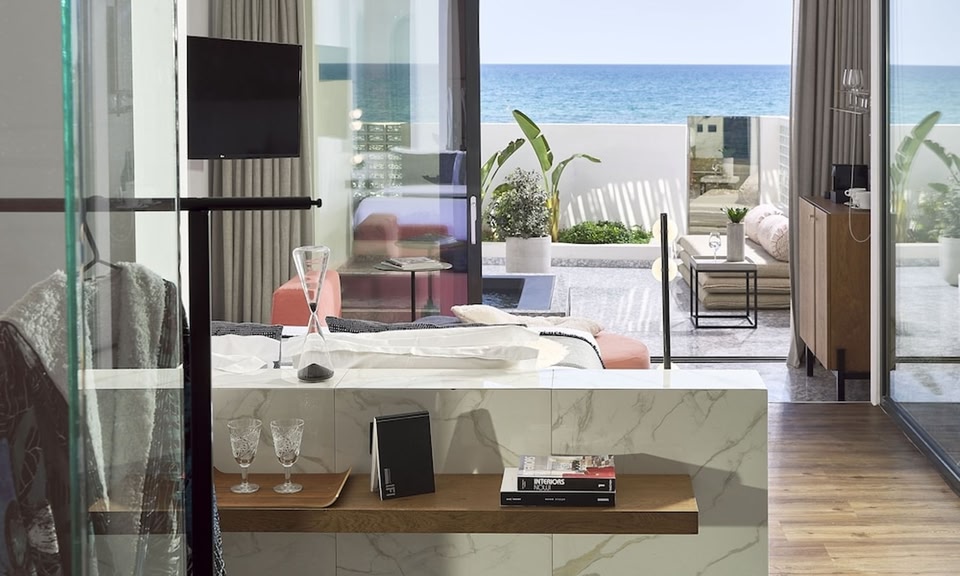 Dyo Suites is located in Rethymno Town, just steps from the sandy beach and a 16-minute walk from the scenic old town. It offers uniquely decorated suites with sea view, spa bath, smart room keys and a digital, voice operated room assistant.