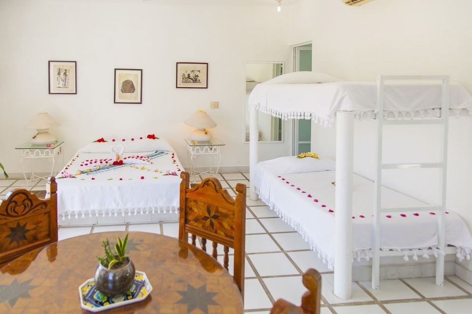 Villas Fa-Sol ligt aan een privéstrand in de wijk Conejos in Santa María Huatulco. Als je zin hebt in een leuke activiteit, kun je een kijkje nemen bij Strand van La Entrega. Geniet je liever op een rustige manier van de natuur? Ga dan naar Strand van Tangolunda of Playa Chahué. Ontdek de wateractiviteiten in de omgeving. Er zijn namelijk tal van faciliteiten in de buurt, bijvoorbeeld voor duiken en waterskiën. Je kunt ook de natuur in trekken en wandel- en fietsroutes afleggen en deelnemen aan een ecotour. Hotel aan een zandstrand, waar je ook geniet van 3 buitenzwembaden Profiteer van het eigen zandstrand van Villas Fa-Sol, ga zeilen en ontspan aan een van de 3 buitenzwembaden. Villas Fa-Sol heeft 16 kamers met airconditioning die zijn voorzien van een kluis en gratis mineraalwater. Alle kamers hebben een eetruimte. Elke flatscreentelevisie van 32 inch heeft kabelzenders. Elke badkamer is voorzien van een douche en gratis toiletartikelen. In dit hotel in Santa María Huatulco is wifi gratis. ´s Avonds wordt een turndownservice aangeboden en een huishoudservice is dagelijks beschikbaar. De locatie beschikt over 3 buitenzwembaden en een kinderzwembad. Overige recreatieve voorzieningen zijn onder andere een privéstrand en een stoombad. De onderstaande recreatieve activiteiten vind je ter plaatse of in de directe omgeving. Mogelijk zijn toeslagen van toepassing.
