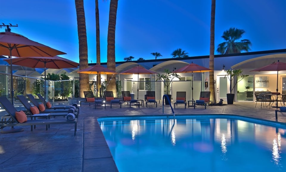 Dit designhotel in Palm Springs heeft een eigen zwembad, dat omgeven wordt door rijen oranje parasols en ligstoelen. Het Palm Springs Art Museum ligt op 5 minuten rijafstand. Er is gratis WiFi en Apple-tv beschikbaar in alle kamers.