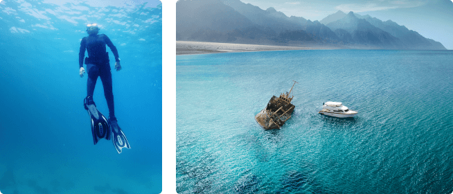 Although Yanbu is the most famous dive area in Saudi, it’s relatively undiscovered as a global scuba destination. Now’s the time to take a Red Sea dive trip here, before everyone else realises it’s here. You’ll see sharks, rays, turtles and much, much more, swimming around the colourful reefs and shipwrecks of this beautiful spot that’s known as the ‘Pearl of the Red Sea’.